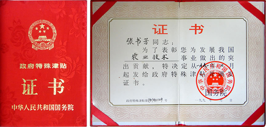張書芳先生 中國著名遺傳學育種專家、國家級有突出貢獻專家、享受國務院特殊津貼、全國勞動模范、首批政府特別獎獲得者。
