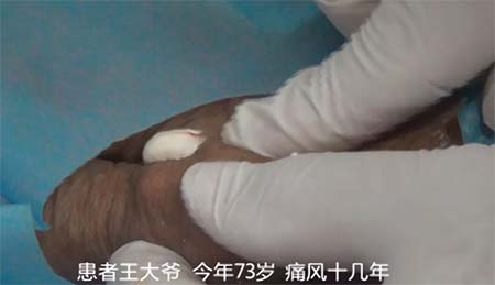 我們抗風竤醫(yī)療機構(gòu)經(jīng)過不斷的探索、研究,總結(jié)了一套無需手術(shù)的新療法治療痛風石。經(jīng)過我們的治療,痛風石會變軟液化。有的通過皮膚表面直接排出體外,有的通過人體的代謝,由腎臟和腸道排出體外,從而達到治療痛風石的目的。